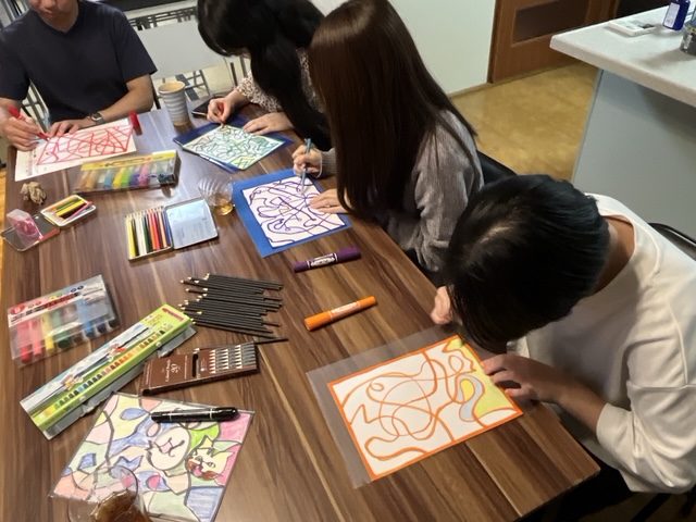 一筆書き講座🎵 2025年10月17日 最終更新日時 : 2025年10月17日 にじのねスコーラ 今日は思いのままに一筆書きを行いました! 通信制高校の楽しい日々の様子をご紹介です!一筆書きのルールは3つだけ。まず、①紙を四角になぞる。②スタートはその四角のどこかから。③筆をゆっくり進めて、いろんな形に方向変換する。後で自分で出来上がった作品にタイトルをつけました!10色で塗ったから、十人十色。。。賑やかな音。。。。お弁当。。。。など、素晴らしい作品がたくさんできました!! Follow me!